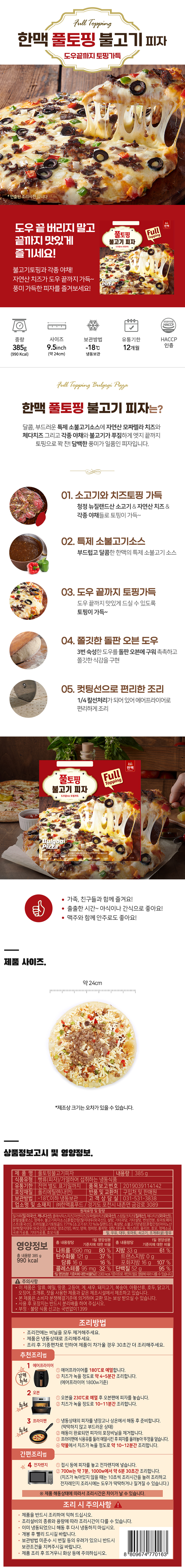 | 품명 및 모델명 | 풀토핑불고기피자 |