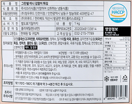 | 품명 및 모델명 | 그린쉘 미니 김말이 튀김 |